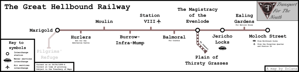 The Moloch Line lies atop the graves of those who led the charge forty years ago, and Bessemer Steel of the Great Hellbound Railway is forever slick with the blood of its Tracklayers. Arriving at Marigold Station where these converge, I was struck by the absence of a third road to Hell, paved with Good Intentions. For that is what we have been told to expect from those who keep us in bondage. We are instructed to believe our oppressors have Good Intentions, all: Parliament, the ministries, the royal family, even the Masters on occasions when they think us unfathomably stupid.
